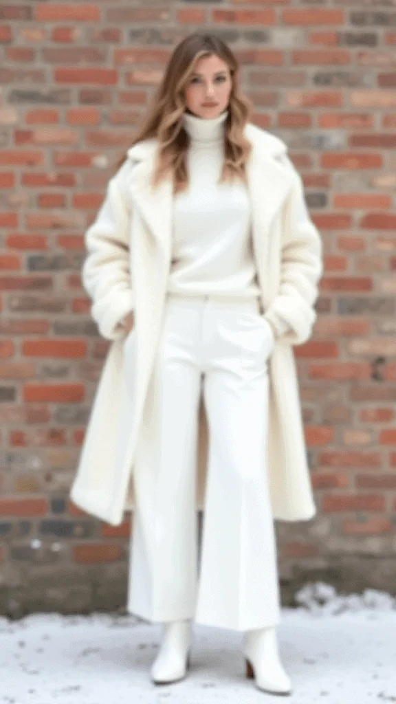 An all-white outfit can feel fresh during winter. Mixing different shades of white keeps the look interesting while staying clean and simple.