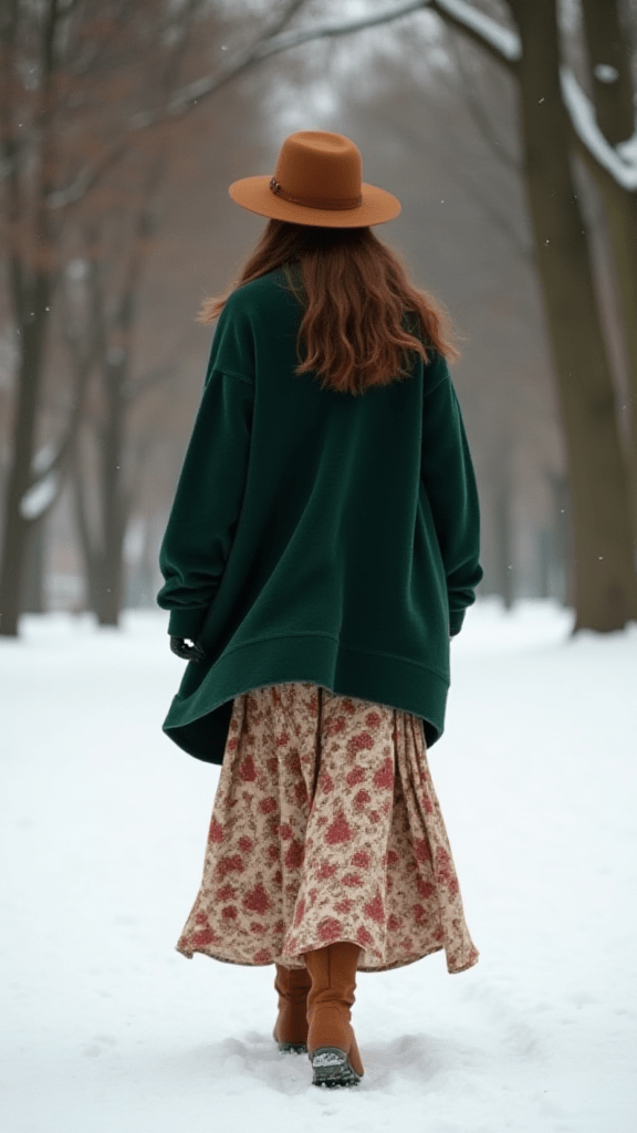 A long, flowy skirt can still work in winter when styled the right way. Pairing it with a chunky cardigan creates a relaxed and cozy outfit that still feels stylish. This look blends softness with warmth.
