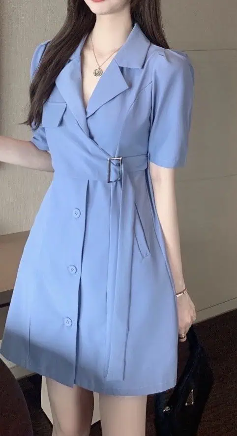 A powder blue wrap dress is both calming and stylish. The soft color feels welcoming, while the wrap shape creates a flattering fit.