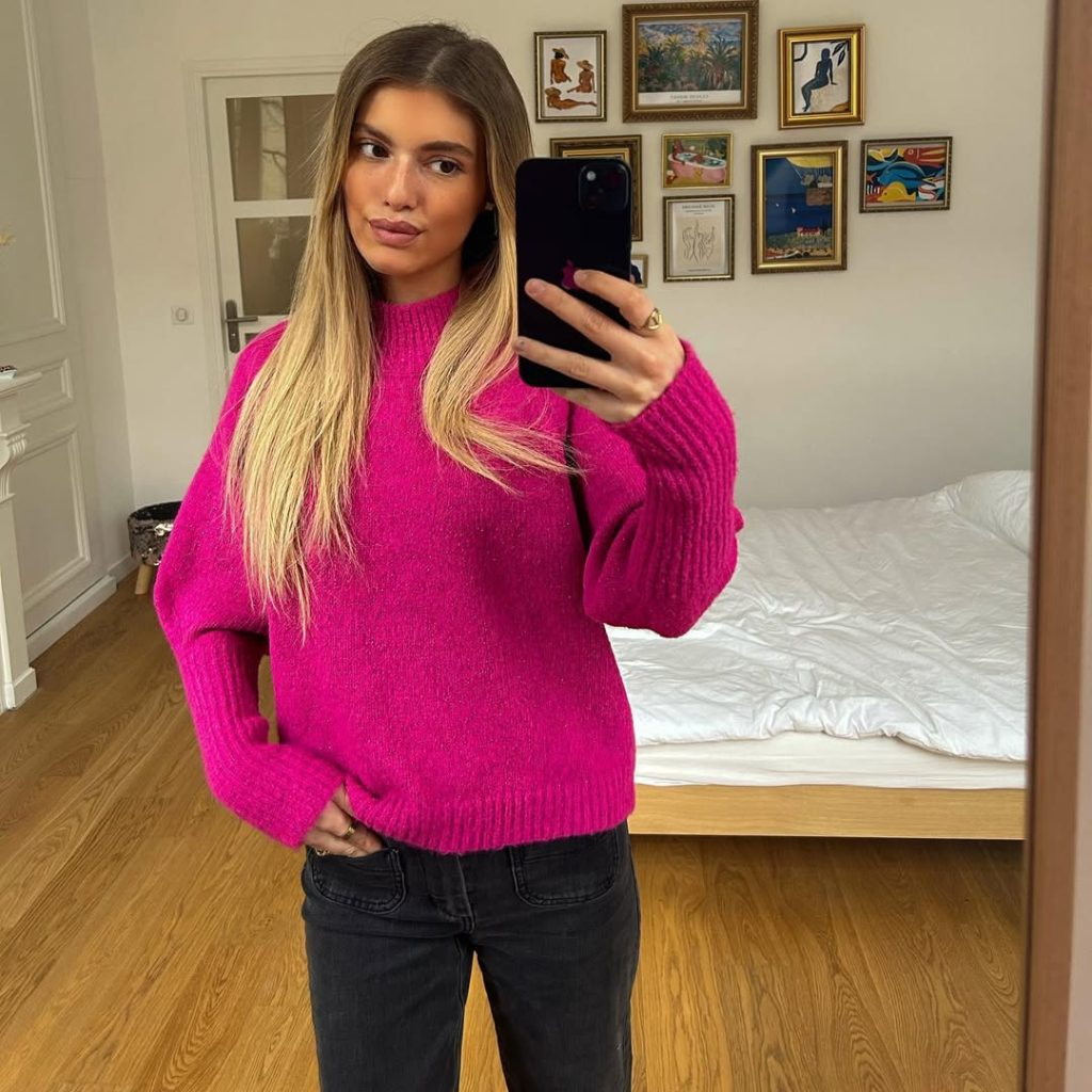 Bright Pink Sweater with Black Denim