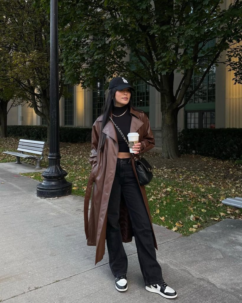 Sneakers and a baseball cap keep the look grounded. Neutral accessories work best so the coat remains the focus.24 Outfit Ideas For School 2026: Stylish, Comfy And Modern Looks For Every Season