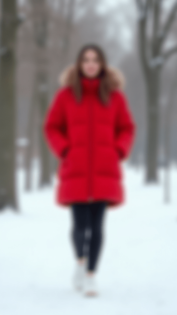 A bright-colored coat can make the outfit feel more lively. This look is ideal for running errands or staying comfortable on cold days.